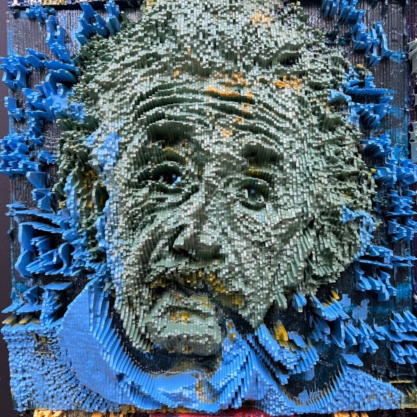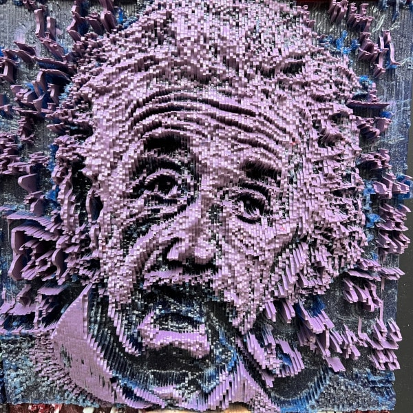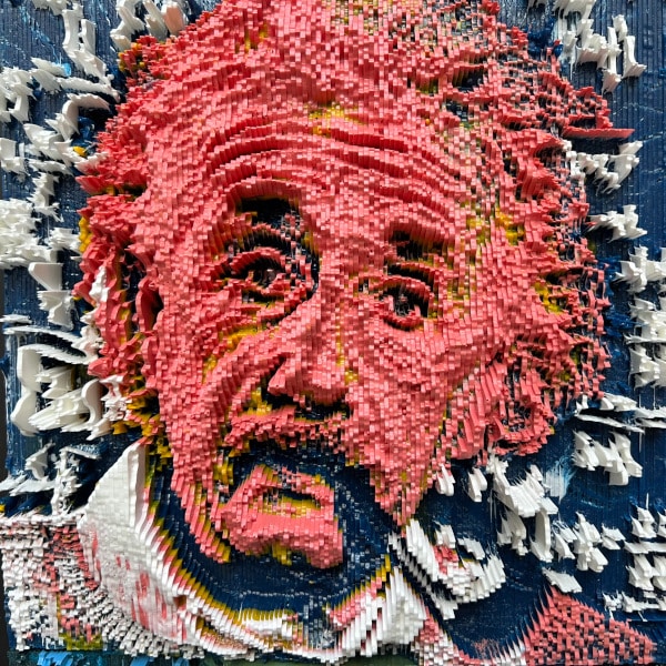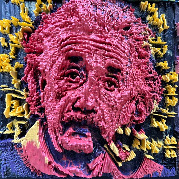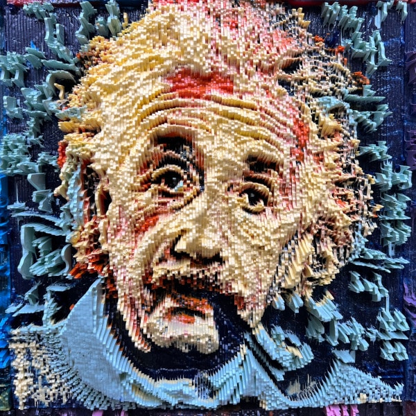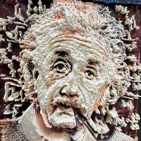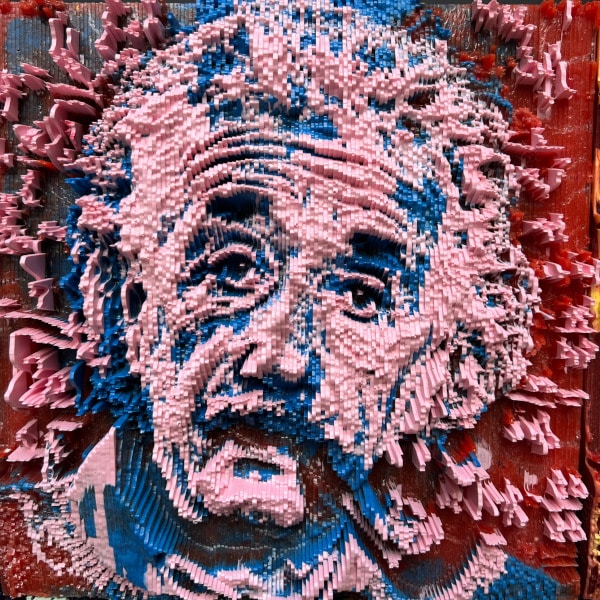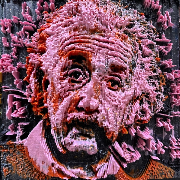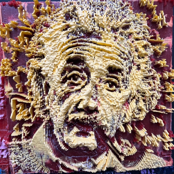 This is the third piece that features Einstein’s iconic face casually staring at the viewer while smoking The Pipe. I added the equations in the background behind him, including the ground-breaking E = mc² .