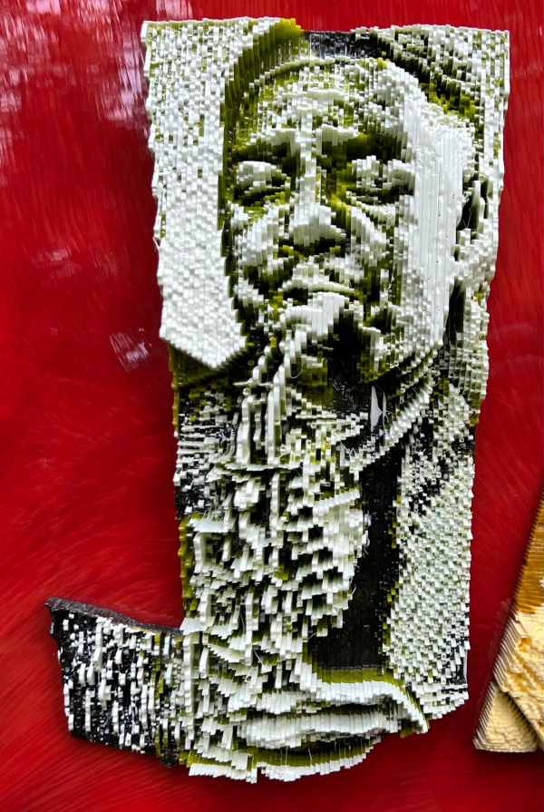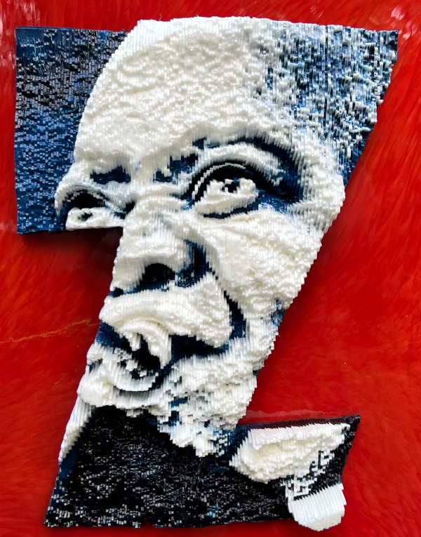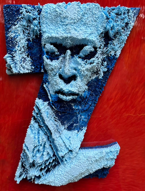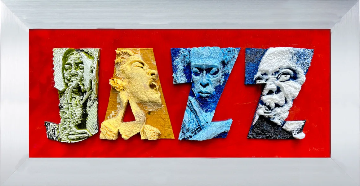 This sculpture is a tribute to the art of jazz, featuring the word “Jazz” and composed of 3D depictions of four iconic jazz musicians. The letter “J” features the face of Charlie Parker playing the saxophone, while the letter “A” depicts Billie Holiday singing. The letter “Z” is represented by Miles Davis in the first one and Louis Armstrong in the second.