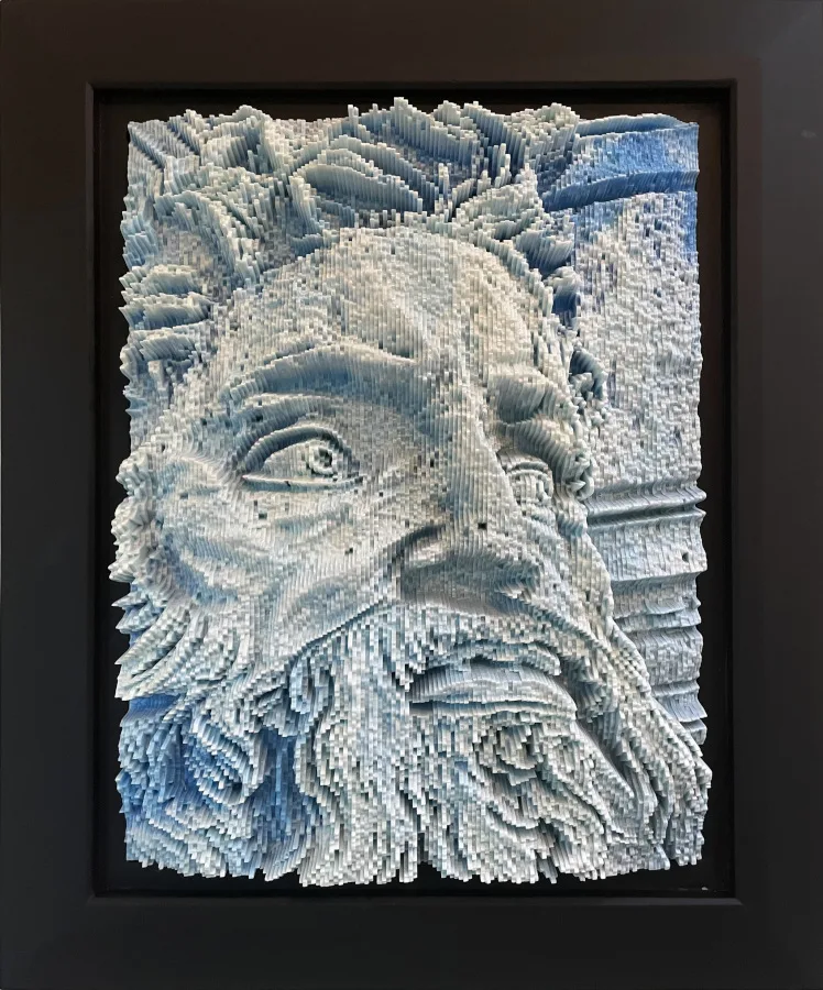 This piece is my interpretation to a small section of Michelangelo’s sculpture Moses. This is the second sculpture by Michelangelo about which I felt strongly that I should try and create a version of my own.